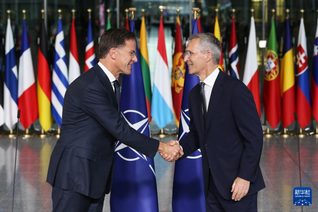 在比利時(shí)首都布魯塞爾北約總部舉行的北大西洋理事會(huì)特別會(huì)議上,呂特和斯托爾滕貝格進(jìn)行了交接。