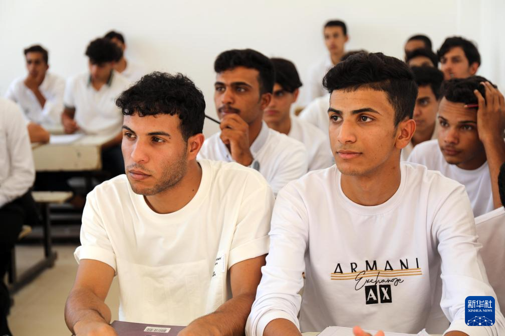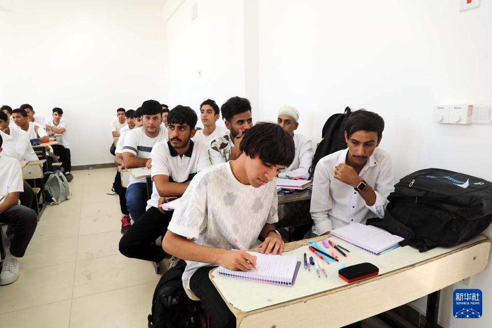 10月8日,當?shù)貙W生在伊拉克穆薩納省一所中企承建示范學校內(nèi)上課。新華社發(fā)(哈利勒·達伍德攝)