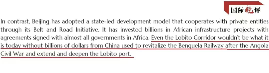 黎文濤認(rèn)為,美國試圖把“洛比托走廊”包裝成美歐為非洲基建作出的貢獻(xiàn),完全不符合事實(shí)。因?yàn)樗暮诵墓羌苤袊缫汛詈?,中國才是名副其?shí)的最大貢獻(xiàn)者?!奥灞韧凶呃取惫倬W(wǎng)上也有這樣一段話:“如果沒有中國投入數(shù)十億美元重建本格拉鐵路、擴(kuò)建洛比托港口,‘洛比托走廊’就沒有當(dāng)今的模樣?!?/p>