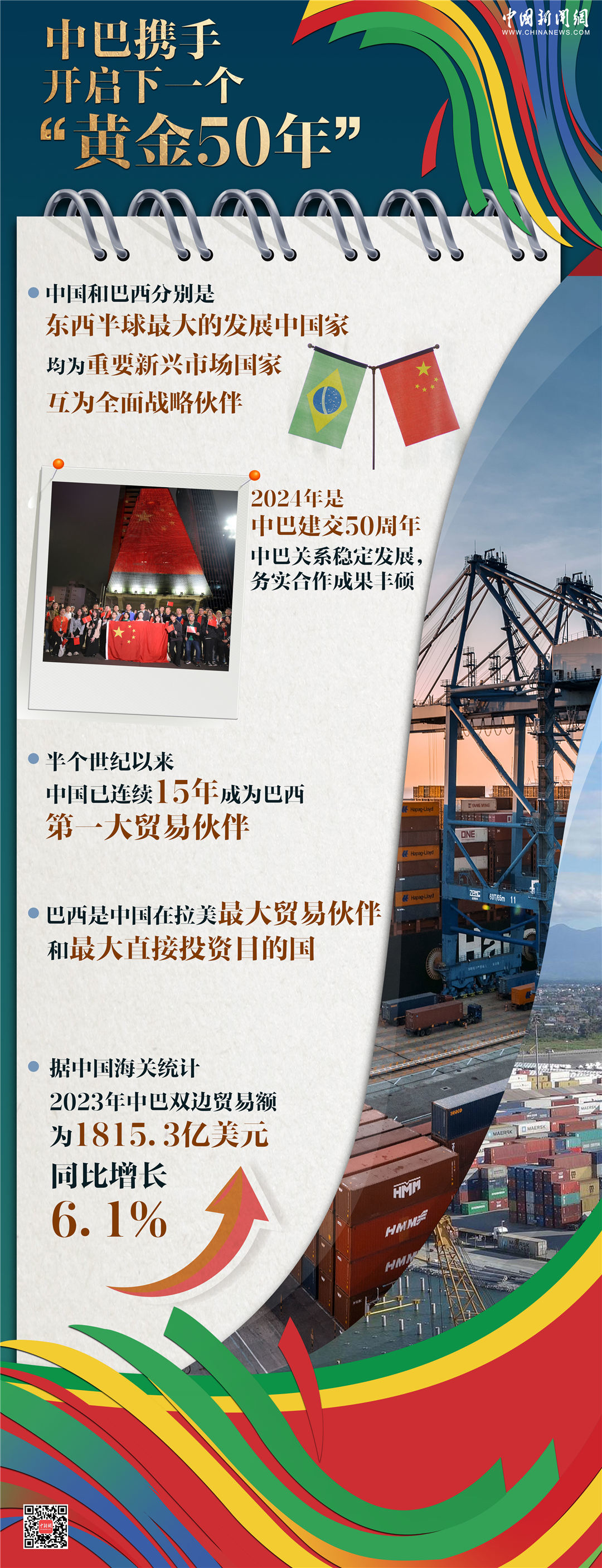“中國和巴西同為發(fā)展中大國和重要新興市場國家,是志同道合的好朋友、攜手前行的好伙伴?!?024年8月15日,習(xí)近平主席同巴西總統(tǒng)盧拉互致賀電,慶祝兩國建交50周年。