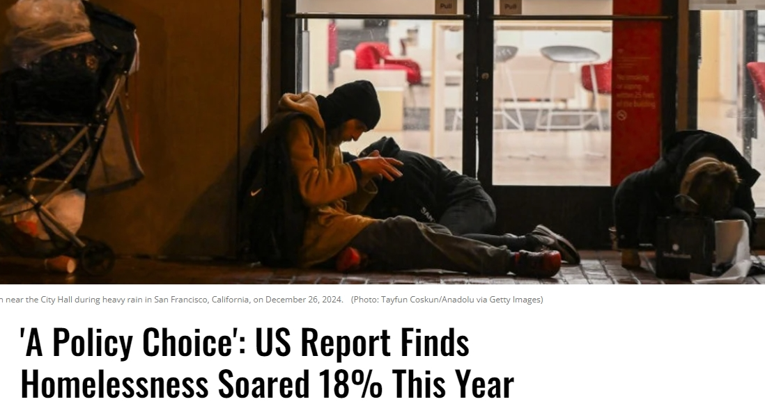 美國(guó)住房和城市發(fā)展部(HUD)本月27日發(fā)布報(bào)告稱(chēng),美國(guó)聯(lián)邦無(wú)家可歸者追蹤系統(tǒng)記錄到的無(wú)家可歸者數(shù)量已超過(guò)77萬(wàn),與去年同期相比驟增了18.1%,也是自2007年開(kāi)始此項(xiàng)統(tǒng)計(jì)以來(lái)的最大增幅。對(duì)此,美國(guó)《共同夢(mèng)想》網(wǎng)站(Common Dreams)報(bào)道指出,這完全是“政策選擇”,后果可以預(yù)見(jiàn)。