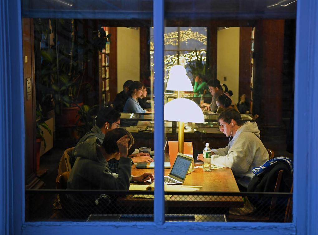 2019年12月7日,在美國紐約,哥倫比亞大學(xué)學(xué)生在圖書館自習(xí)。新華社記者李睿攝