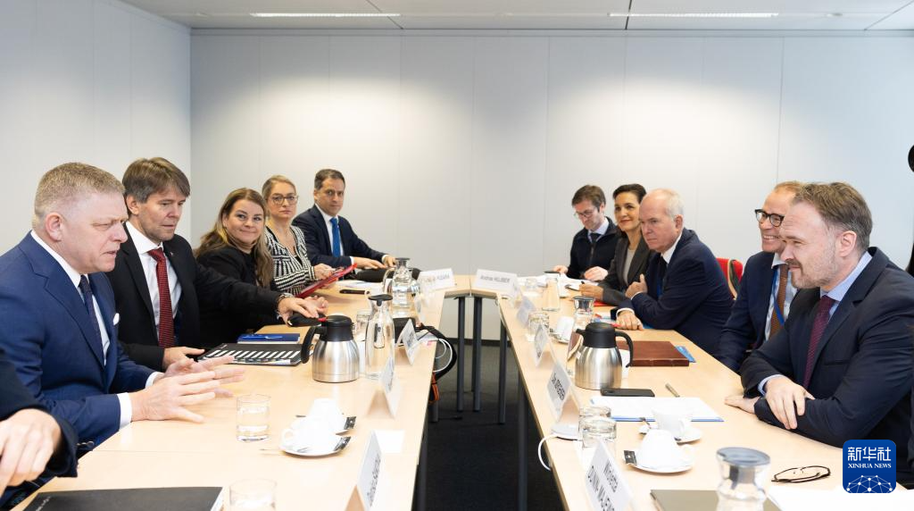 1月9日,在比利時布魯塞爾,斯洛伐克總理菲佐(左一)與歐盟能源專員丹·約根森(右一)舉行會談。新華社發(fā)(歐盟供圖)