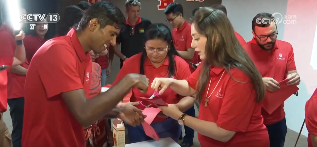 當(dāng)?shù)貢r(shí)間1月28日一大早,也就是北京時(shí)間的除夕夜,巴西東北部小鎮(zhèn)阿波迪打破了往日的平靜。很多當(dāng)?shù)孛癖娭?,他們的中?guó)朋友即將舉行春節(jié)慶祝活動(dòng),因而早早地來(lái)到了活動(dòng)現(xiàn)場(chǎng)。在現(xiàn)場(chǎng),中國(guó)農(nóng)業(yè)技術(shù)人員不僅貼上了春聯(lián)、掛上了福字,還邀請(qǐng)當(dāng)?shù)孛癖娨黄鹂创和怼溩?、剪窗花、?xiě)春聯(lián),這也是很多當(dāng)?shù)孛癖姷谝淮螀⒓哟汗?jié)慶?;顒?dòng)。