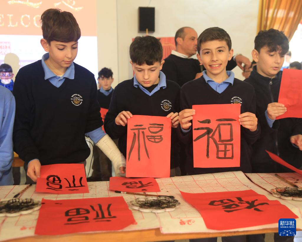與此同時,在學(xué)校禮堂內(nèi),學(xué)生們正在熱火朝天地體驗中國書法藝術(shù)的獨特魅力。馬耳他中國文化中心的工作人員為學(xué)生們講解中國文房四寶的歷史淵源,現(xiàn)場演示書法基本技法。隨后,學(xué)生們興致勃勃地練習(xí)書寫,感受中國書法的韻味,他們在宣紙上留下的墨跡勾勒出對東方文化的向往。當(dāng)一個個工整的“福”字、“春”字躍然紙上時,學(xué)生們興奮不已,互相欣賞彼此的作品。
