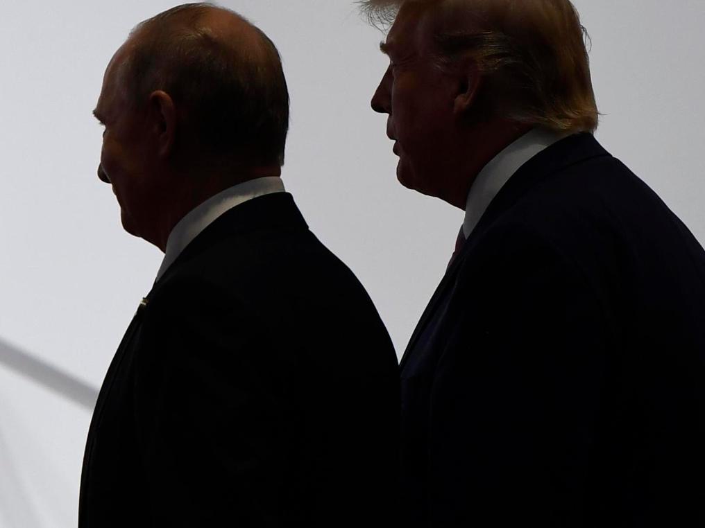 這是2019年6月28日在日本大阪拍攝的參加G20峰會(huì)的美國(guó)總統(tǒng)特朗普(右)和俄羅斯總統(tǒng)普京。新華社/美聯(lián)