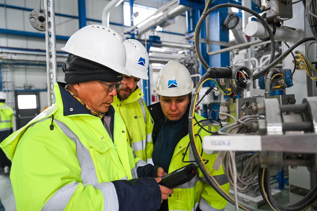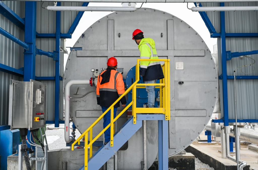 2月12日,中土兩國工程師在土耳其阿克薩拉伊省的圖茲湖地下天然氣儲庫擴建項目地面場站查看設(shè)備。新華社記者劉磊攝