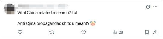 在該所X平臺(tái)賬號(hào)轉(zhuǎn)發(fā)《華爾街日?qǐng)?bào)》報(bào)道的評(píng)論區(qū),有人說(shuō):“重要的中國(guó)相關(guān)研究?哈哈哈,你說(shuō)的是反華宣傳吧?!?/p>