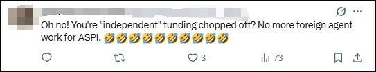 “哦豁!‘獨(dú)立智庫(kù)’的資金被切斷啦?ASPI這下做不成外國(guó)代理人的勾當(dāng)咯。”
