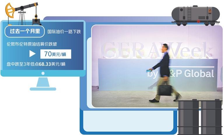 先看最近國際油價的走勢。一方面是油價隨著美國的關稅戰(zhàn)威脅而劇烈波動,并且跌到半年來的最低點。統(tǒng)計數(shù)據(jù)表明,在過去一個月里,國際油價一路下跌,倫敦布倫特原油期貨結(jié)算價跌破70美元/桶,盤中更是跌至3年低點68.33美元/桶。自特朗普就職以來,國際油價每桶平均價格已經(jīng)下跌了10美元之多。