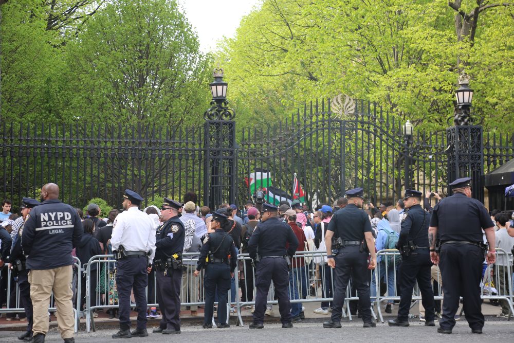 2024年4月30日,警察在美國(guó)紐約哥倫比亞大學(xué)外警戒。新華社記者劉亞南 攝