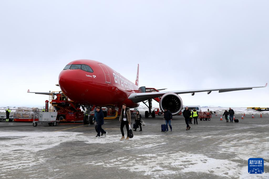 3月18日,人們乘坐飛機抵達丹麥自治領地格陵蘭島首府努克。新華社記者 趙丁喆 攝
