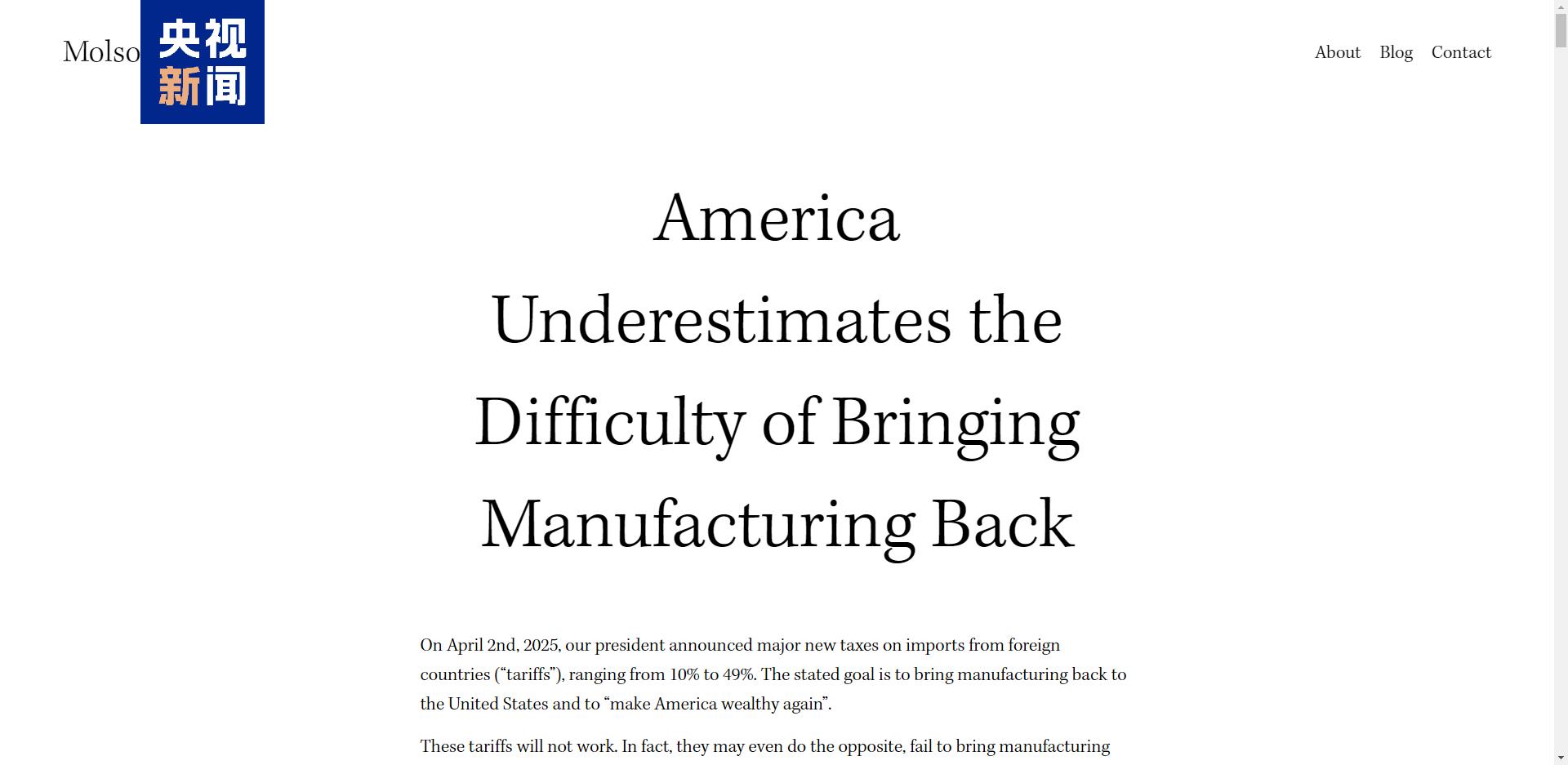 莫爾森在文中稱,大多數(shù)美國人追求的是低犯罪率、優(yōu)質(zhì)教育和低廉醫(yī)療。他說,那些對關稅政策最熱衷的人,往往從未親身參與過生產(chǎn)。