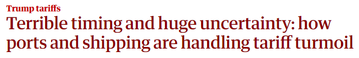 英國《衛(wèi)報》網(wǎng)站13日刊文稱,受到美國政府近期關(guān)稅政策的影響,運(yùn)價持續(xù)波動、港口擁堵恐成為全球貨物運(yùn)輸在短期內(nèi)面臨的常態(tài)。