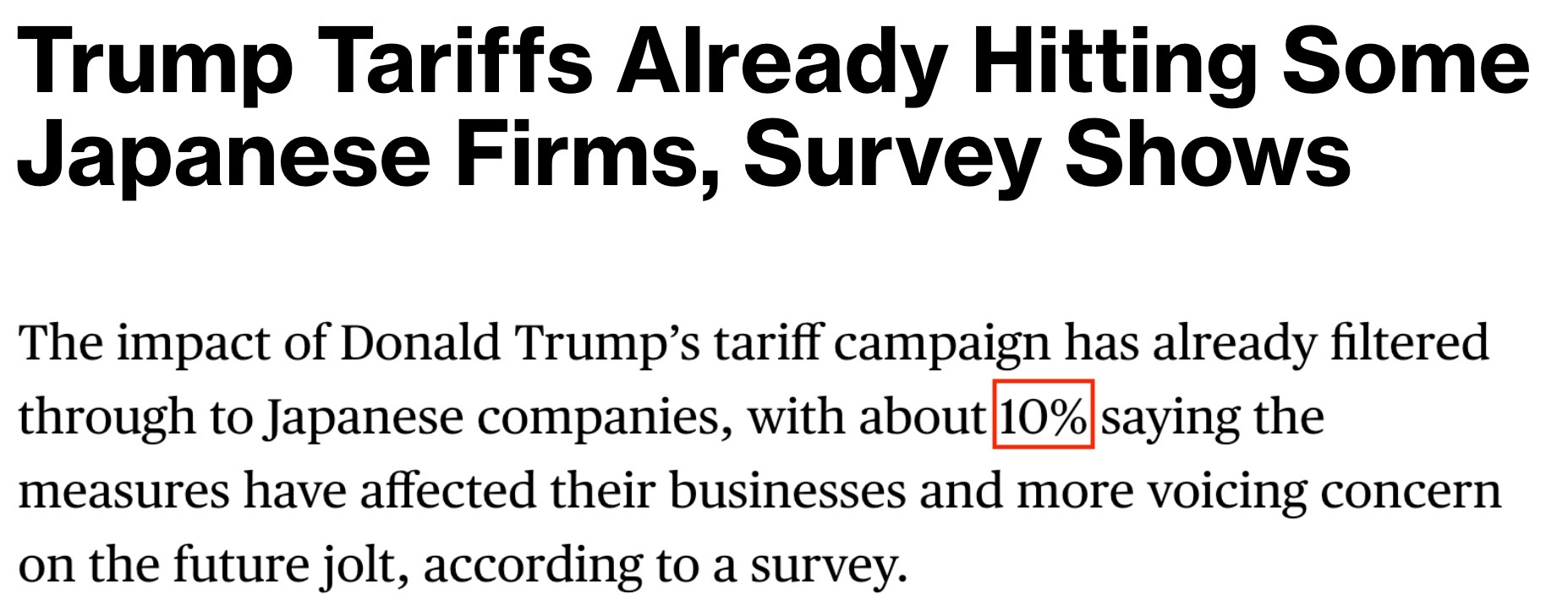 根據日本財務省22日公布的最新調查結果,約10%的日本企業(yè)表示,美國的關稅措施已經直接影響到了它們的業(yè)務;更多的企業(yè)則對未來的關稅沖擊感到恐慌。