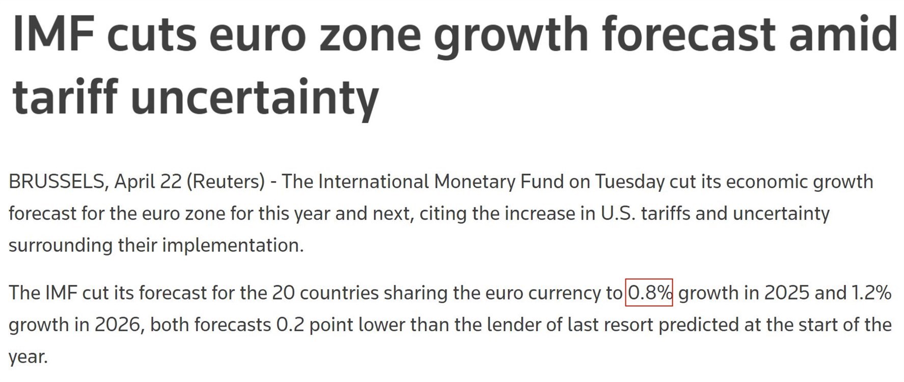 根據國際貨幣基金組織22日發(fā)布的最新一期《世界經濟展望報告》,受美國關稅措施沖擊和政策不確定性的影響,今年歐元區(qū)經濟增長率預計將比之前下調0.2個百分點至0.8%。