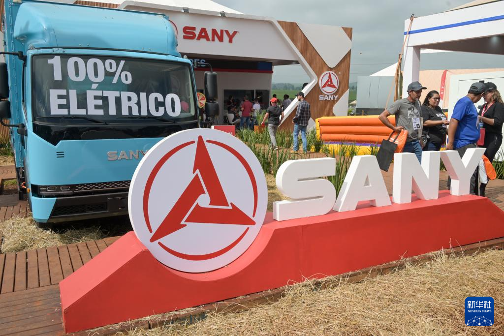 4月29日,在巴西圣保羅州里貝朗普雷圖市舉行的2025年巴西農(nóng)業(yè)科技展上,人們在三一重工展臺參觀。新華社記者 陳昊佺 攝