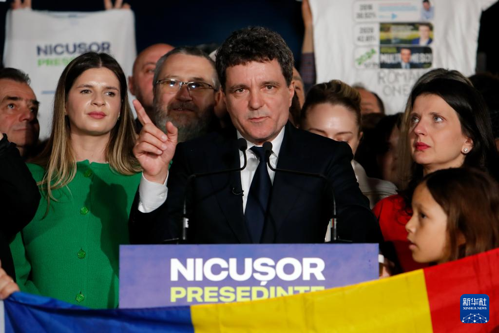 5月18日,在羅馬尼亞布加勒斯特,獨(dú)立候選人、布加勒斯特市長(zhǎng)尼庫紹爾·達(dá)恩在總統(tǒng)選舉第一次投票后發(fā)表講話。新華社發(fā)(克里斯泰爾攝)