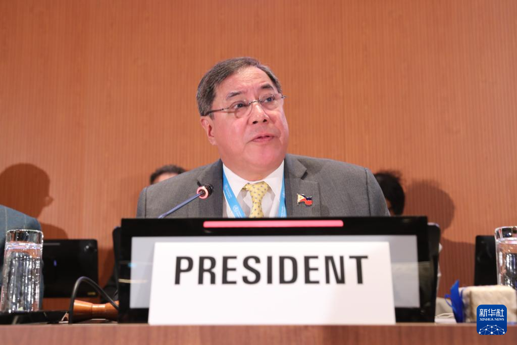 5月20日,在瑞士日內(nèi)瓦,第78屆世界衛(wèi)生大會主席赫爾博薩宣布審議通過“大流行協(xié)定”。新華社記者 杜哲宇 攝