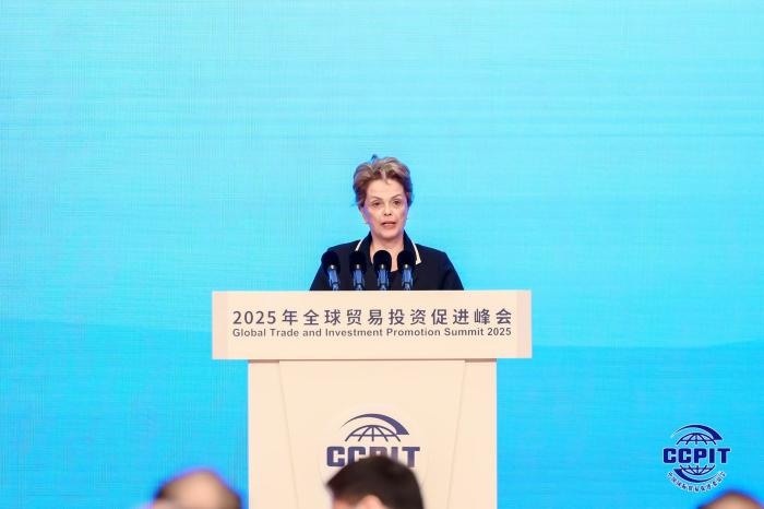5月22日,由中國(guó)貿(mào)促會(huì)主辦的2025年全球貿(mào)易投資促進(jìn)峰會(huì)在北京舉行。新開發(fā)銀行行長(zhǎng)、巴西前總統(tǒng)迪爾瑪·羅塞芙在開幕式致辭。中國(guó)貿(mào)促會(huì)供圖