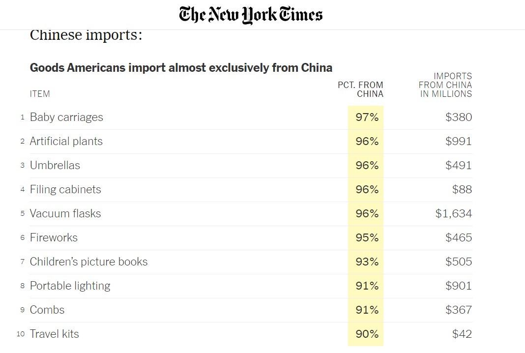 美國政府的關(guān)稅政策沖擊著美國社會的方方面面,近日,《紐約時(shí)報(bào)》發(fā)表的一篇文章以梳理清單的方式,展現(xiàn)了普通美國人生活中的“中國制造”,以及關(guān)稅可能對他們生活產(chǎn)生的影響。
