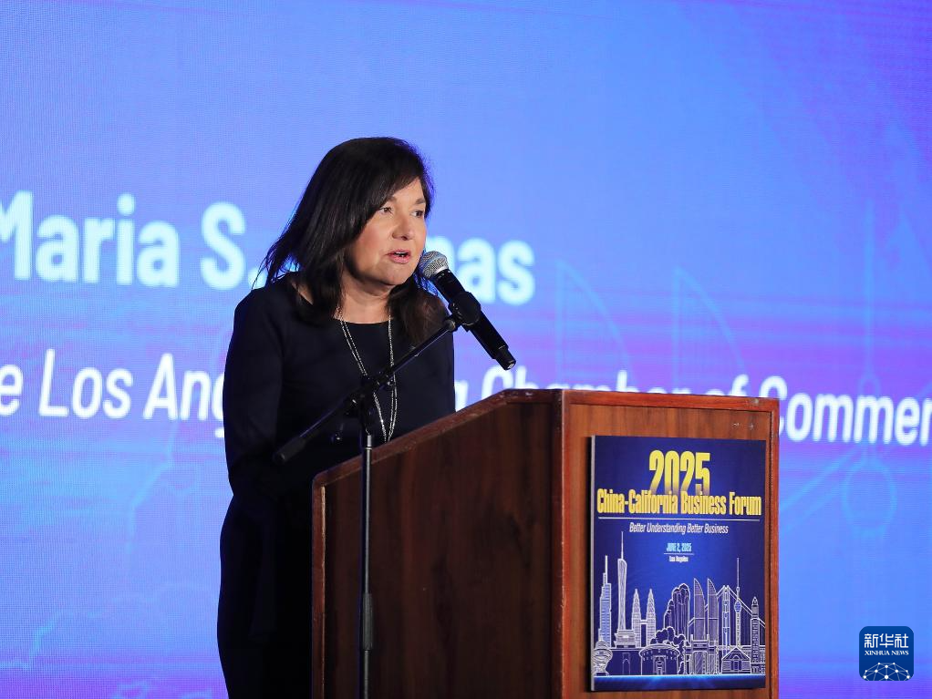 6月2日,在美國洛杉磯,洛杉磯地區(qū)商會(huì)主席瑪麗亞·薩利納斯在2025年中國—加州經(jīng)貿(mào)論壇上發(fā)表講話。新華社發(fā)(邱晨攝)