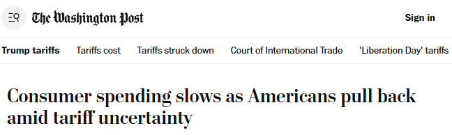 《華盛頓郵報》報道稱,由于美國政府的貿(mào)易戰(zhàn)持續(xù)引發(fā)經(jīng)濟不確定性,目睹關(guān)稅風(fēng)波的美國人已開始縮減開支。新數(shù)據(jù)顯示,美國人購買汽車和服裝時愈發(fā)謹(jǐn)慎。美國經(jīng)濟分析局5月30日發(fā)布的數(shù)據(jù)顯示,本就顯疲軟的消費支出增長在4月顯著放緩,因為更多家庭在觀望關(guān)稅相關(guān)的不確定性將如何發(fā)展。