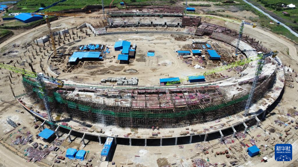 這是坦桑尼亞北部城市阿魯沙的一片繁忙工地:六座高聳的塔吊伸展著鋼鐵巨臂,在高空精準(zhǔn)吊運建材;焊接聲、機械轟鳴聲與指令聲此起彼伏,交織成一首建設(shè)交響曲;上千名工人頭戴安全帽、身著反光背心,正全力拉滿施工“進度條”……一座現(xiàn)代化體育場已初具雛形。