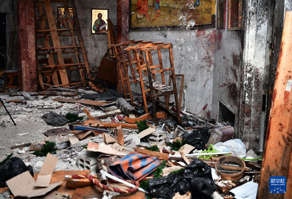這是6月22日拍攝的敘利亞首都大馬士革東部發(fā)生爆炸的教堂內景。新華社發(fā)(阿馬爾·薩法爾賈拉尼攝)