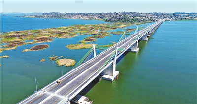 隨著坦桑尼亞總統(tǒng)哈桑揮動(dòng)國(guó)旗,示意車輛可以通行,等待駛過(guò)馬古富力大橋的首批車輛紛紛啟動(dòng)。身穿當(dāng)?shù)貍鹘y(tǒng)服飾的民眾載歌載舞,現(xiàn)場(chǎng)歡呼聲、歌聲、掌聲交織在一起……日前,由中國(guó)土木與中鐵十五局聯(lián)合承建的非洲最長(zhǎng)矮塔斜拉橋——坦桑尼亞馬古富力大橋(見圖,中國(guó)土木供圖)建成通車。橫跨維多利亞湖的馬古富力大橋如一道飛虹連通兩岸,成為中非友誼新地標(biāo)。