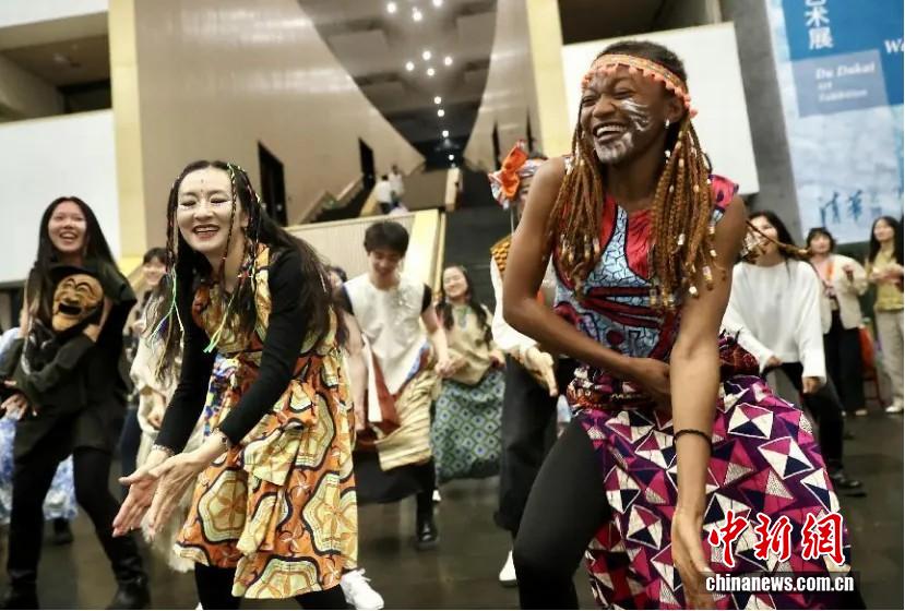 2025年4月27日,清華大學(xué)藝術(shù)博物館在北京舉辦了一場以非洲音樂舞蹈藝術(shù)為主題的公共教育活動。圖為演員和觀眾一同跳舞。 中新社記者 易海菲 攝