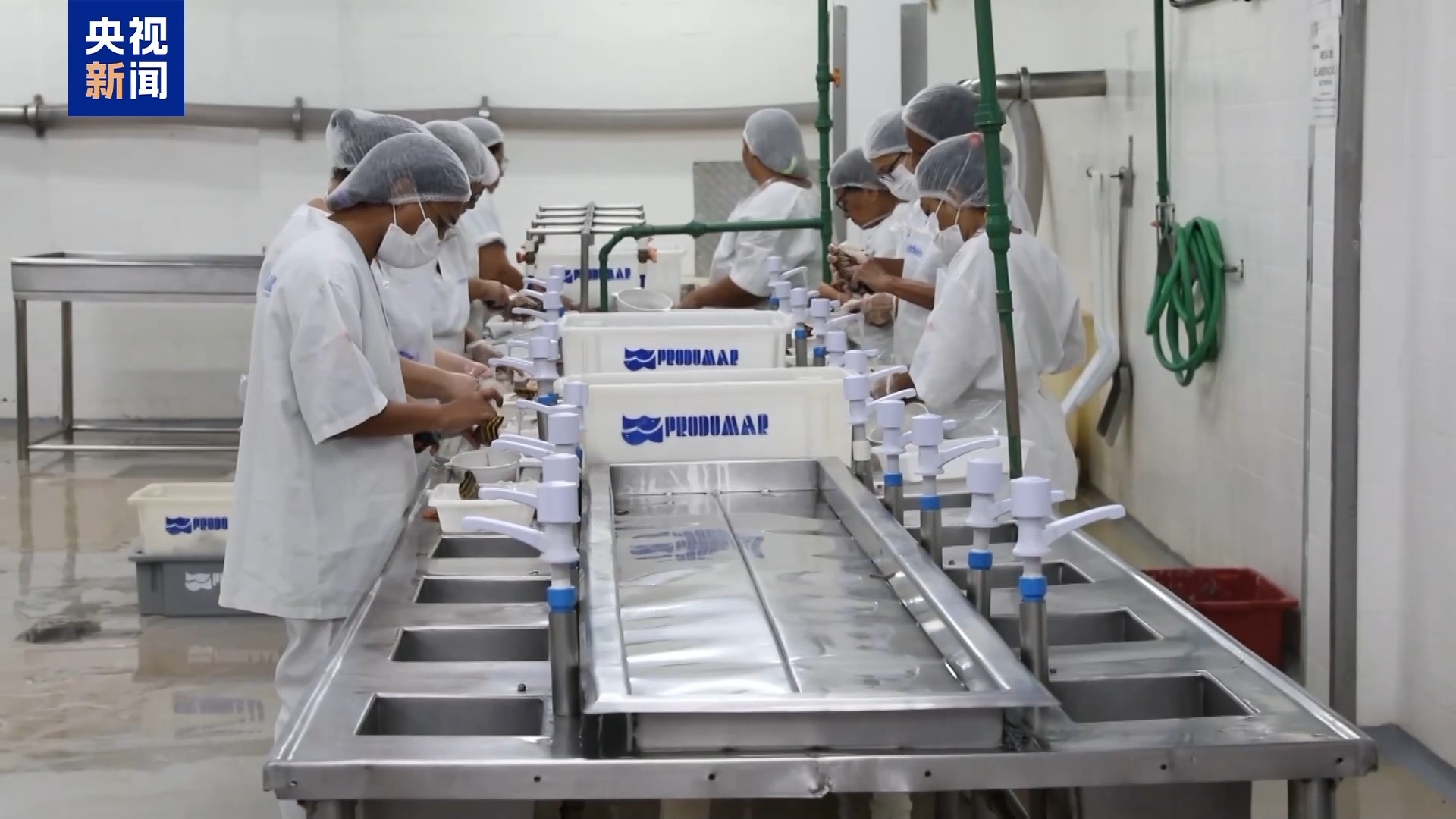 納塔爾一海鮮加工出口公司負(fù)責(zé)人 阿里馬爾·弗朗薩·菲略:這是我們加工所有出口到美國海鮮的車間。過去的情況是我們早上卸下的海鮮,第二天早上就已送到美國邁阿密,供應(yīng)美國市場。我們有非常高效的產(chǎn)品即時供應(yīng)能力。如今如你們所見,車間一切都停了下來。