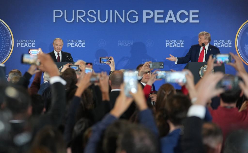 8月15日,美國總統(tǒng)特朗普(右)與俄羅斯總統(tǒng)普京在美國阿拉斯加州安克雷奇市埃爾門多夫-理查森聯(lián)合軍事基地舉行會晤后共同出席聯(lián)合記者會。新華社記者吳曉凌攝