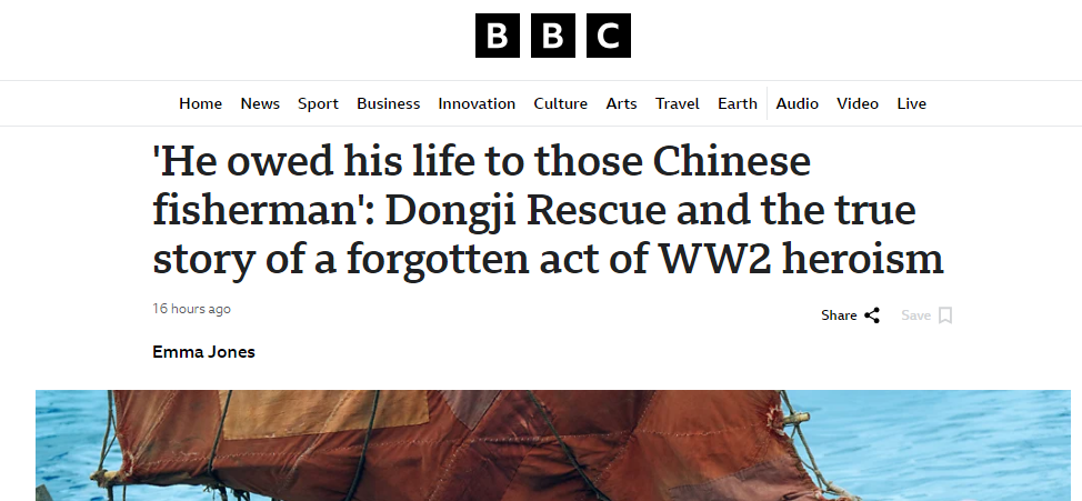 暑期檔電影《東極島》正在熱映,影片講述了1942年,一艘搭載英軍戰(zhàn)俘的船只在舟山群島附近被潛艇擊沉,上千名戰(zhàn)俘被封鎖在船艙內(nèi),命懸一線。危難之際,東極島上的漁民,不顧風高浪急與生命危險,毅然駛向深海救人的故事。近日,英國廣播公司網(wǎng)站發(fā)表一篇文章回顧了相關(guān)歷史事件,標題是《“他的生命歸功于中國漁民”:東極島救援與二戰(zhàn)中一段被塵封的英雄事跡》。