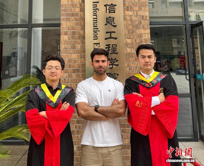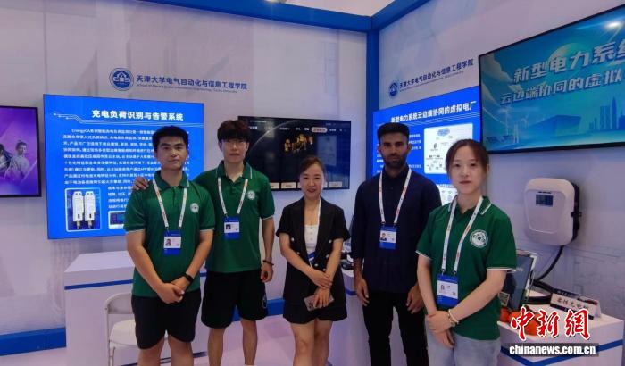 2024年6月,世界智能產業(yè)博覽會期間,穆罕默德·沙拉爾與導師和實驗室同學一起參與相關科研成果展陳工作。(天津大學 供圖)