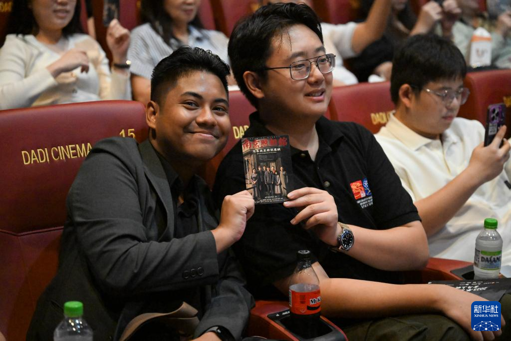 8月24日,在馬來西亞吉隆坡,觀眾在《南京照相館》馬來西亞首映禮上展示電影票。新華社記者 程一恒 攝