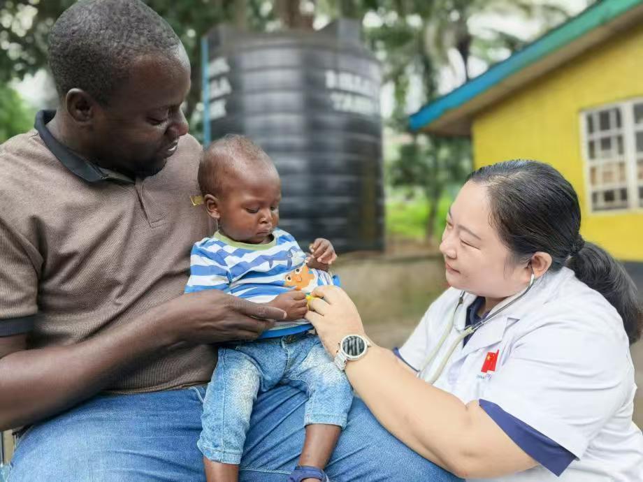中國(guó)援助塞拉利昂醫(yī)療隊(duì)專家為當(dāng)?shù)貎和丛\