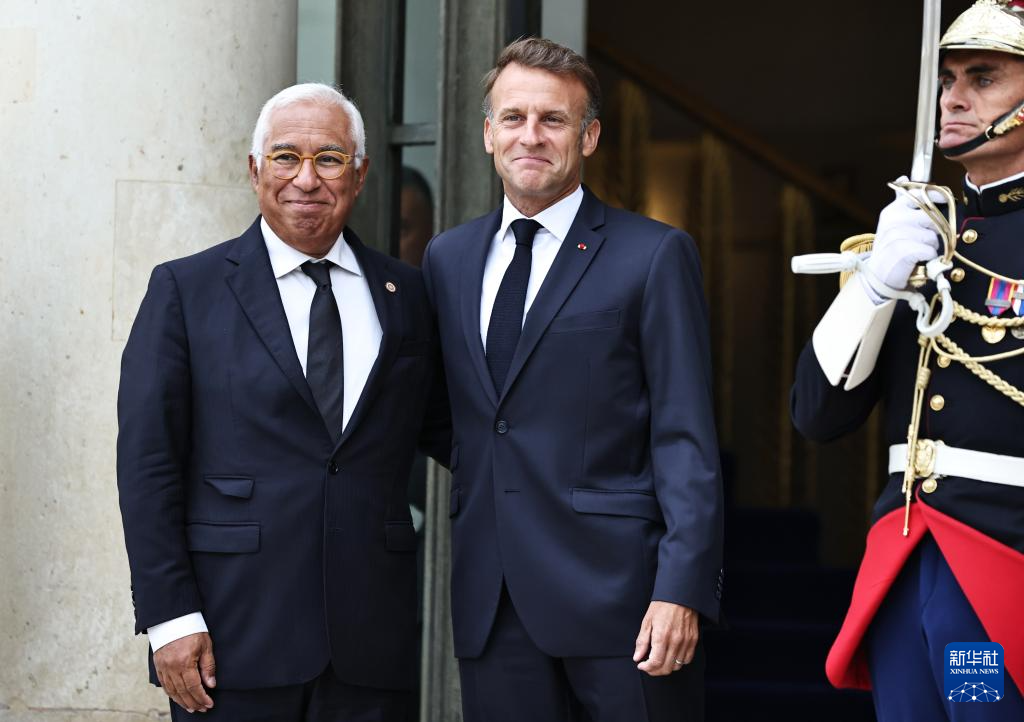 9月4日,在法國(guó)首都巴黎的總統(tǒng)府愛(ài)麗舍宮,法國(guó)總統(tǒng)馬克龍迎接出席“志愿聯(lián)盟”線上會(huì)議的歐洲理事會(huì)主席科斯塔(左)。新華社記者 高靜 攝