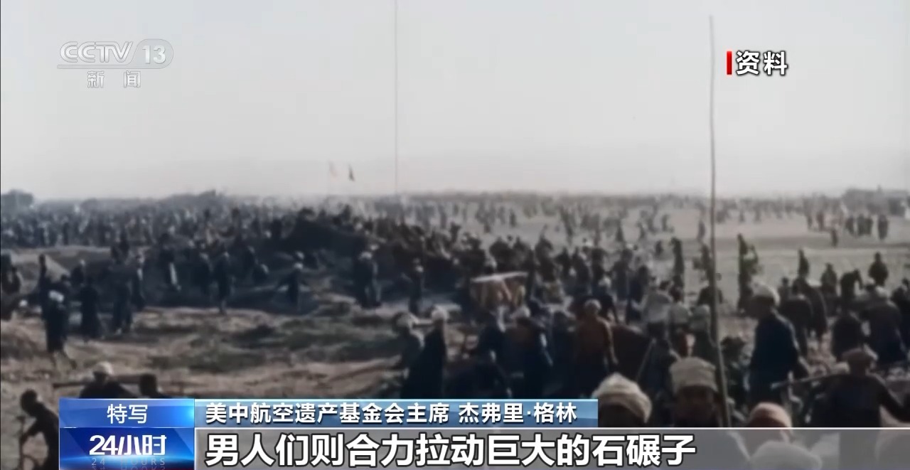 美中航空遺產基金會主席 杰弗里·格林:婦女們背上背著孩子,坐在地上把大石塊敲成小石子;孩子們再把小石子撿到指定地點;男人們則合力拉動巨大的石碾子,有時候要100個人才能拉動一臺10噸重的石碾子,就為了把跑道壓平整。無論是寒冬還是酷暑,婦女們敲碎的每一塊石頭,都是在為機場出力,為飛機起降創(chuàng)造條件,讓美國飛行員能順利升空抗擊日軍。這背后是一種信念:他們所做的一切都在為勝利搭建基礎。