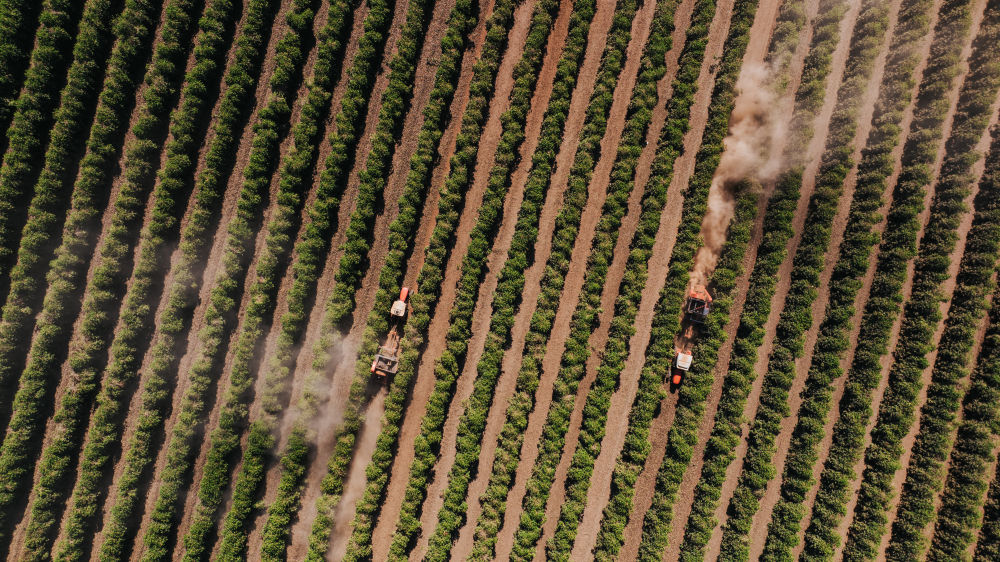 正值旱季,巴西東南部米納斯吉拉斯州天氣干燥。大片咖啡樹采摘已結(jié)束,農(nóng)機(jī)駛過,紅土飛揚(yáng)??Х葮潇o靜佇立,等待來年的豐收。