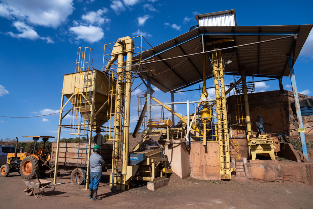 8月27日,在位于巴西米納斯吉拉斯州巴拉那伊巴河畔卡爾穆的一家咖啡莊園,工作人員進(jìn)行咖啡處理作業(yè)。新華社記者王天聰攝