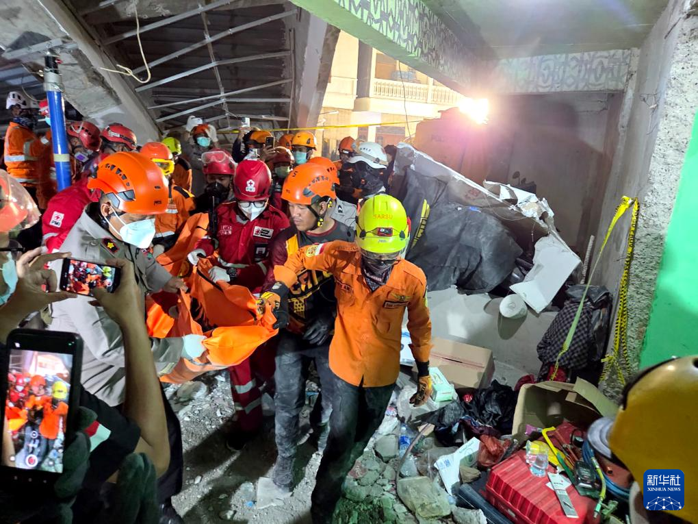 10月1日,救援人員在印度尼西亞東爪哇省詩都阿佐縣建筑倒塌現(xiàn)場(chǎng)救出一名幸存者。新華社發(fā)(印尼國(guó)家搜救局供圖)