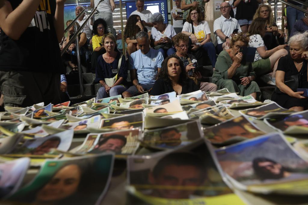 10月4日,被扣押人員家屬和支持停戰(zhàn)的人們?cè)谝陨刑乩S夫舉行游行集會(huì),要求政府迅速在加沙地帶實(shí)現(xiàn)?;穑尡豢垩喝藛T回家。新華社發(fā)(吉爾·科恩·馬根攝)