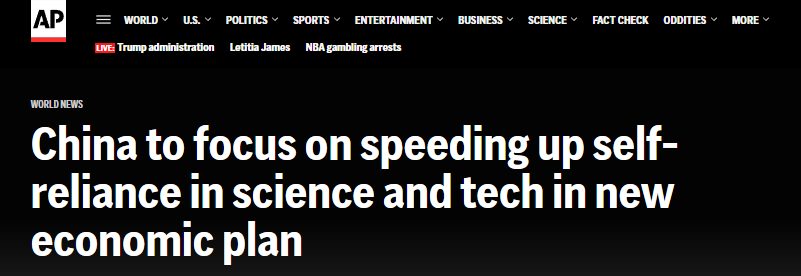 美聯(lián)社報道稱,近年來,中國的產(chǎn)業(yè)政策成功促進了電動汽車與風電、光伏產(chǎn)業(yè)的迅猛發(fā)展,目前正將重心延伸至機器人及人工智能領(lǐng)域。報道援引分析人士的話說,此次公報強調(diào)科技自立自強水平要實現(xiàn)大幅提高,這反映出中國在應對外部壓力時已具備了更強的韌性。
