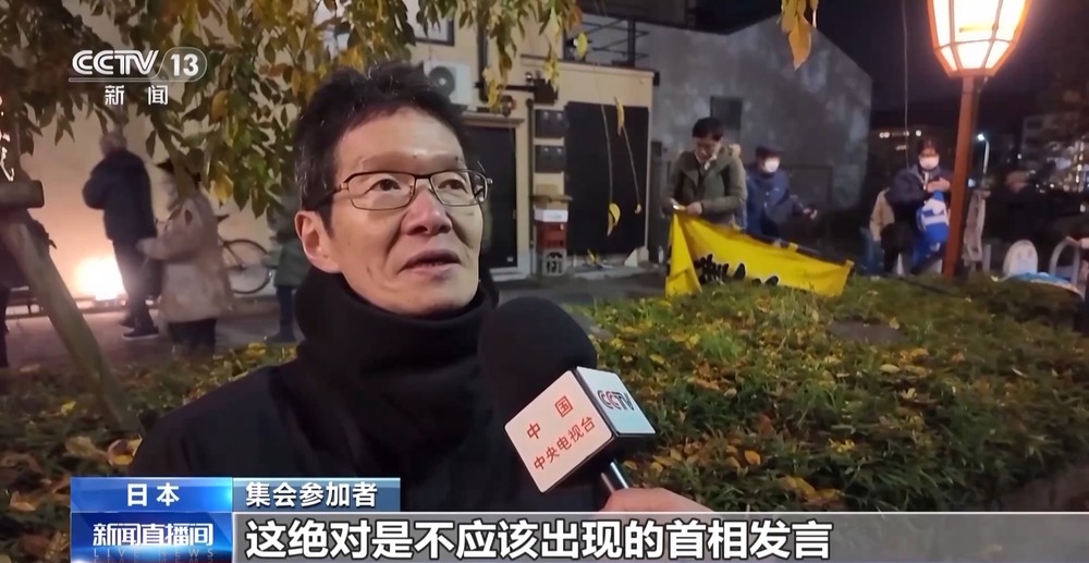 集會參加者:我當(dāng)然認為高市應(yīng)該撤回錯誤言論,對于國民來說,這絕對是不應(yīng)該出現(xiàn)的首相發(fā)言,我認為這是違反憲法的。