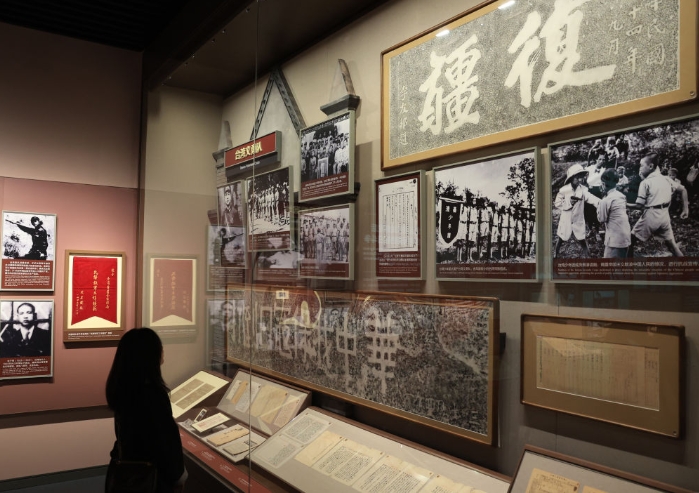 10月25日,參觀者在中國(guó)人民抗日戰(zhàn)爭(zhēng)紀(jì)念館參觀《不屈的寶島 丹心向祖國(guó)——臺(tái)灣同胞抗日史實(shí)展》。新華社記者 張晨霖 攝