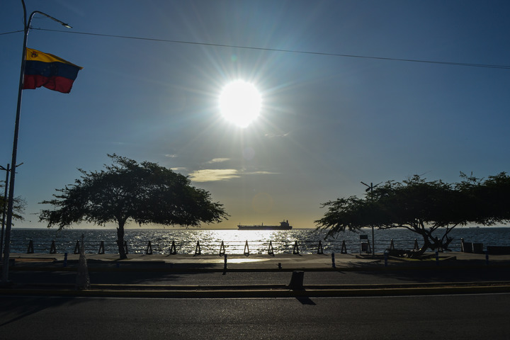 2025年12月23日,一艘油輪停泊在委內(nèi)瑞拉蘇利亞州馬拉開波湖上。當(dāng)?shù)啬繐粽呷涨跋蛐氯A社透露,23日在該國西部馬拉開波湖這一核心產(chǎn)油區(qū),仍可見油輪正在等待出海或穿過拉斐爾·烏達(dá)內(nèi)塔將軍大橋進(jìn)入巴霍格蘭德港口。新華社發(fā)
