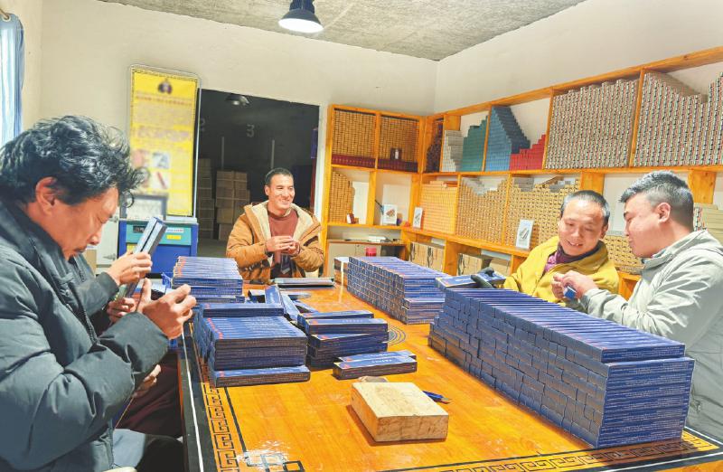 河坡鎮(zhèn)仁白村扎西尼瑪?shù)墓し焕?,藏香、藏紙、文?chuàng)產(chǎn)品琳瑯滿目,吸引著遠(yuǎn)道而來的游客。這家年收入超150萬元的工坊,帶動當(dāng)?shù)?0多名村民就業(yè),人均每年可以拿到4萬多元的工資。