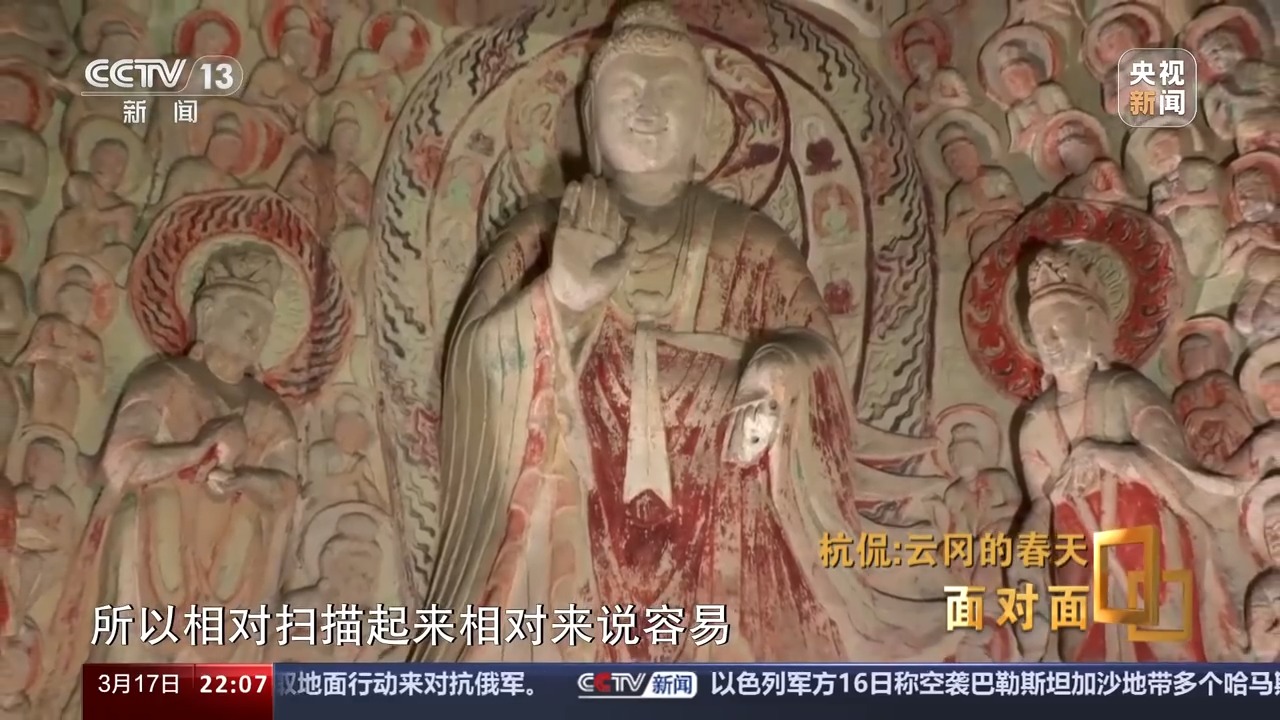 杭侃:因?yàn)槎鼗推鸩皆?,到現(xiàn)在都是我們學(xué)習(xí)的榜樣。但是敦煌它正是因?yàn)槠鸩皆?,可能我們現(xiàn)在技術(shù)迭代比較快。所以從技術(shù)迭代的角度來(lái)說(shuō)我們并不落后。我們現(xiàn)在的精度已經(jīng)到了0.03毫米了,但是那樣需要的算力是非常大的。我們這有一個(gè)超算中心,超算中心是什么概念?就是你看到的一個(gè)洞窟的運(yùn)算能力,要和一個(gè)中等城市的,我們叫智慧城市,那個(gè)量是一樣的。云岡它是一個(gè)皇家工程,所以那個(gè)像都特別大,敦煌它很多洞窟比較小,另外敦煌它的壁畫非常精彩,但是壁畫是二維的,所以相對(duì)掃描起來(lái)相對(duì)來(lái)說(shuō)容易,但是我們這個(gè)地方它一個(gè)是大,第二個(gè)就是雕刻的手法多。所以像你看到的第六窟,我們到現(xiàn)在都沒(méi)有拿得出來(lái),大家都能認(rèn)可的采集方案。