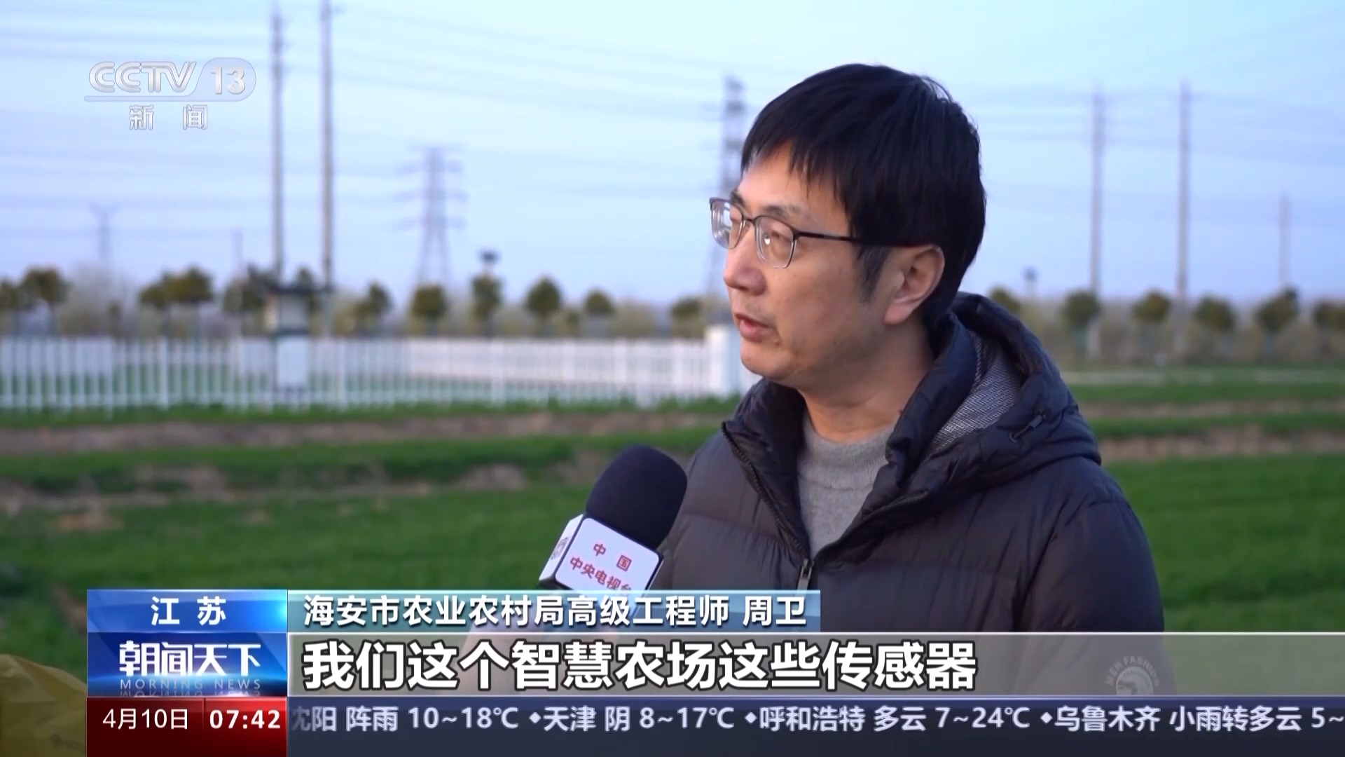 海安市農業(yè)農村局高級工程師 周衛(wèi):國家就把整個渠道、道路、灌溉系統(tǒng)修好,我們這個智慧農場這些傳感器基本上都是國家補貼的。